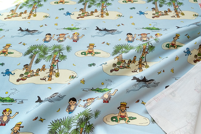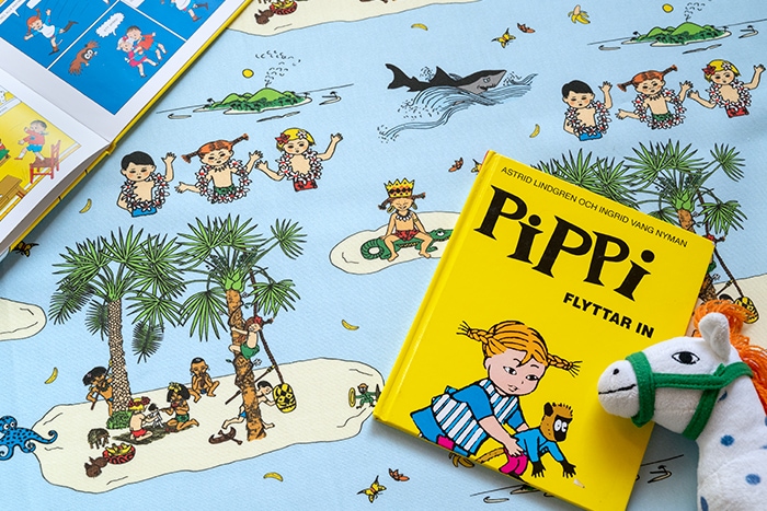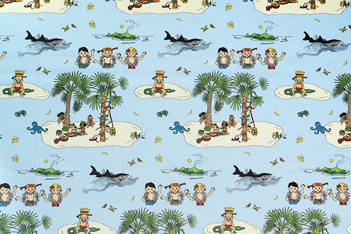 「長くつ下のピッピ」に登場する南の島、「Kurrekurreduttön」をモチーフにした、さわやかなブルーの生地。お子様のお部屋にもぴったりの、愛らしいデザイン。小物にしてオトナが持っていてもかわいいですよ◎